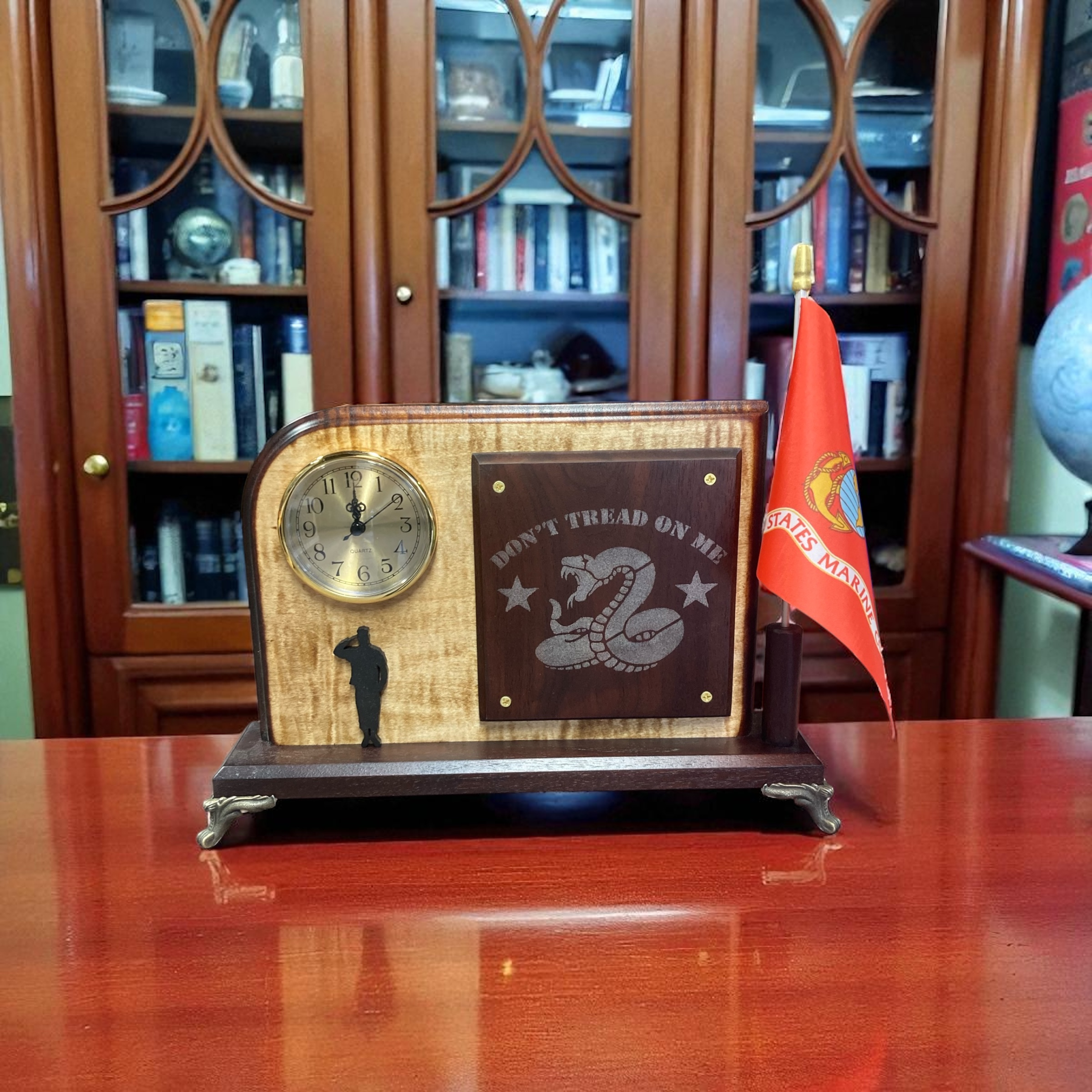 The beautiful clock was designed for those families that had a loved one serve in Marines .This clock would be a great way to remember their love ones that served in the military. This clock is 13" x 8" and the finish feels like a piece of furniture.