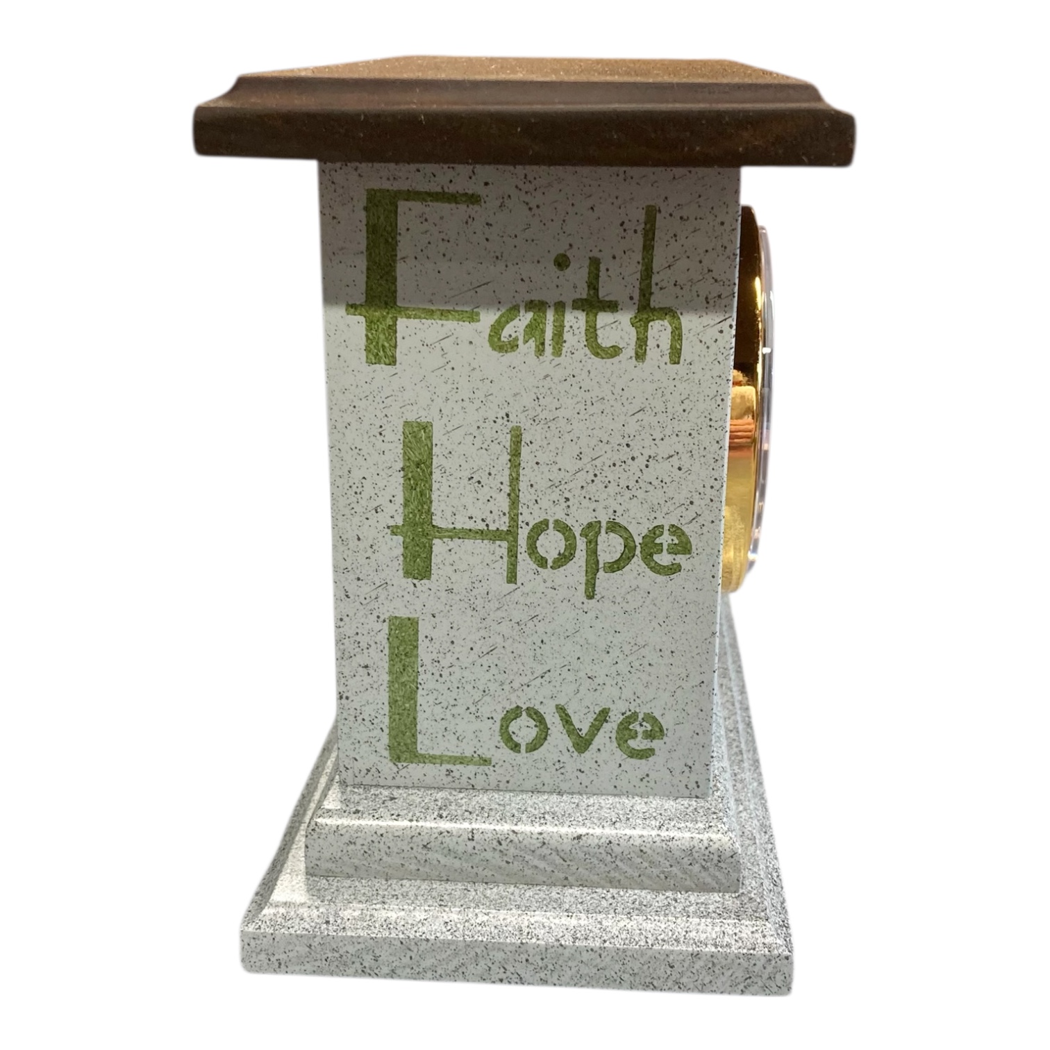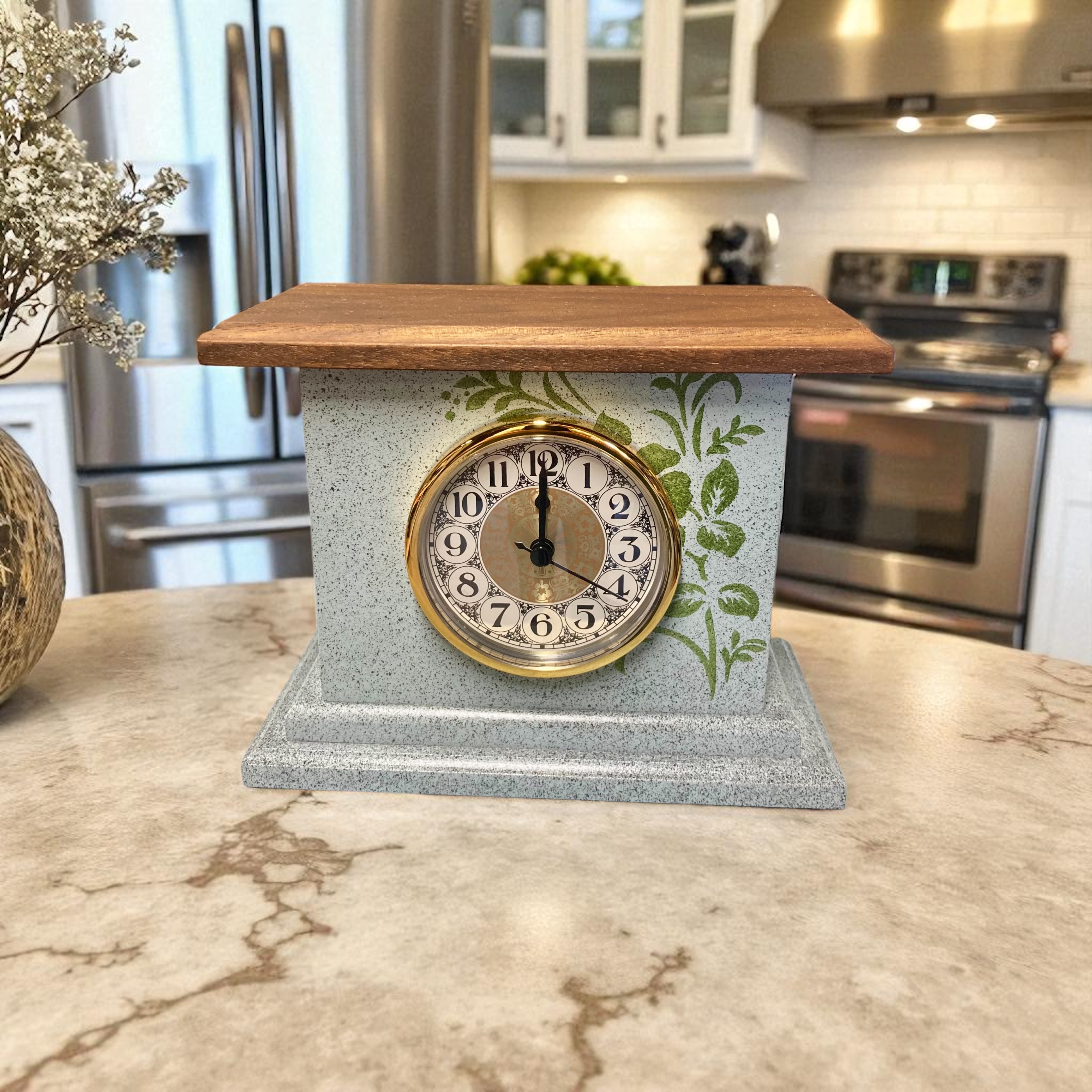 This beautiful painted Garden series clock is the perfect gift for someone that loves gardens or flowers. She has a quartz movement that will keep perfect time and there are four feet to raise it up off the surface area.