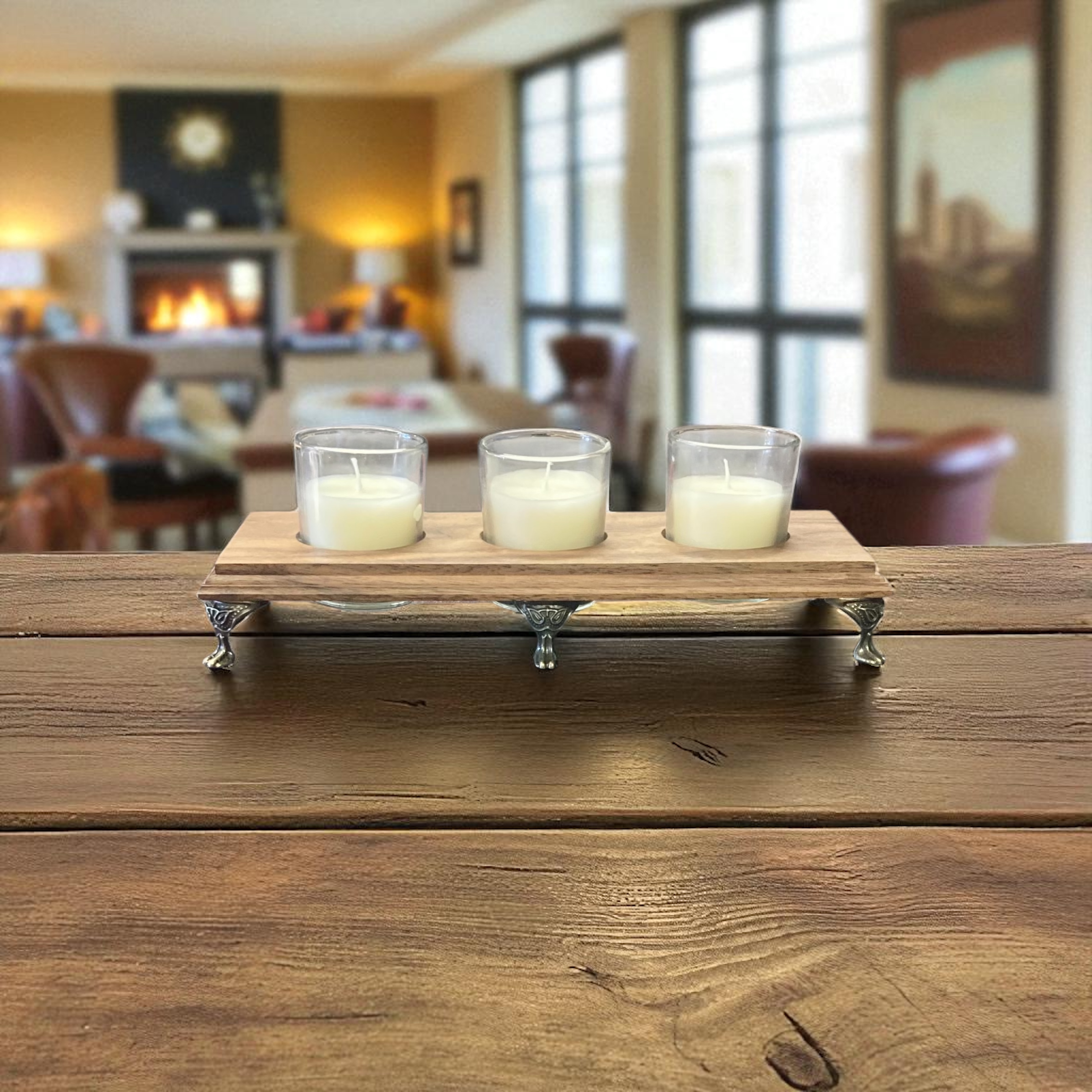 This little beauty is made from Walnut . The wood itself has a beautiful grain structure and warm appeal. This Candle Holder holds 3 glass votive candles which are included. Lite these up on the dining tables or on your Mantle they will look great wherever you place them,